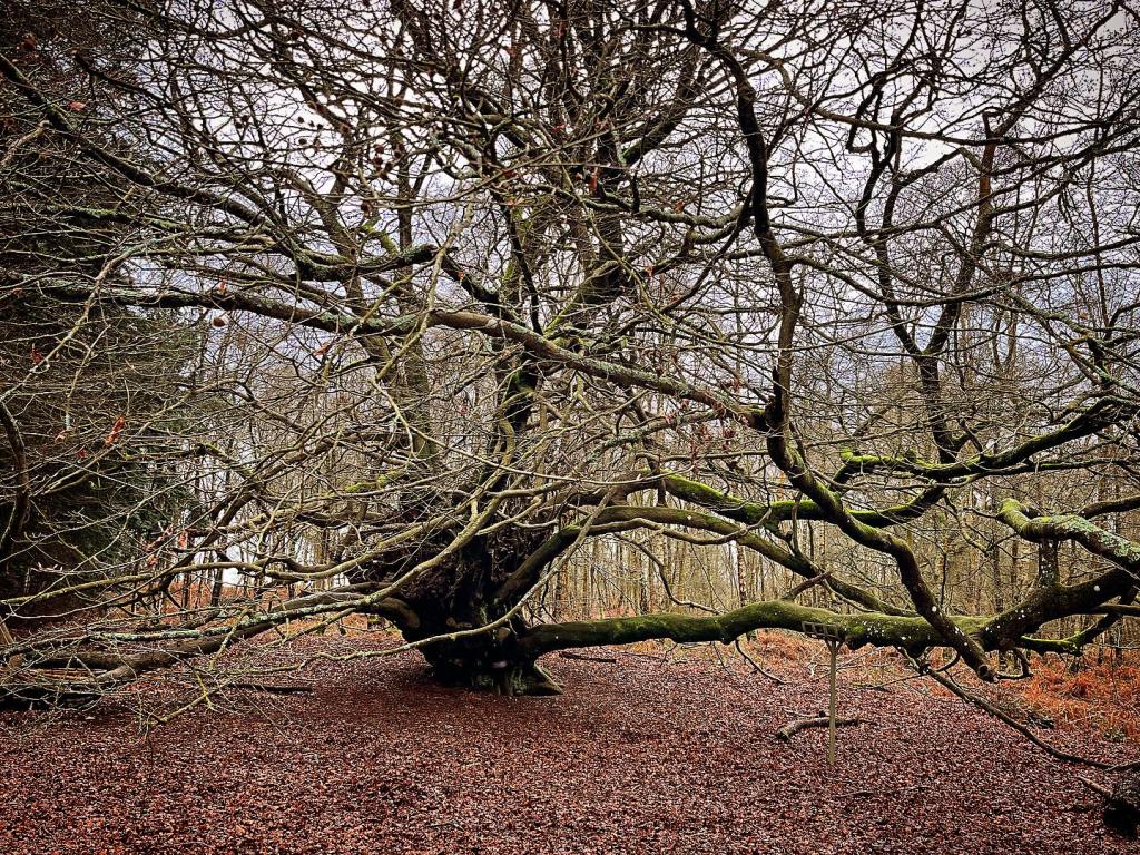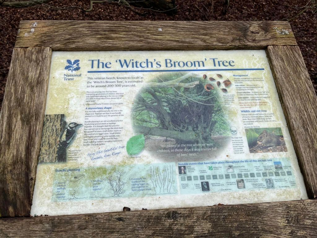 Supported by a metal post and known as “The Witch’s Broom”, this huge old beech tree is estimated to be some 200-300 years old and measures almost nine metres around its trunk.