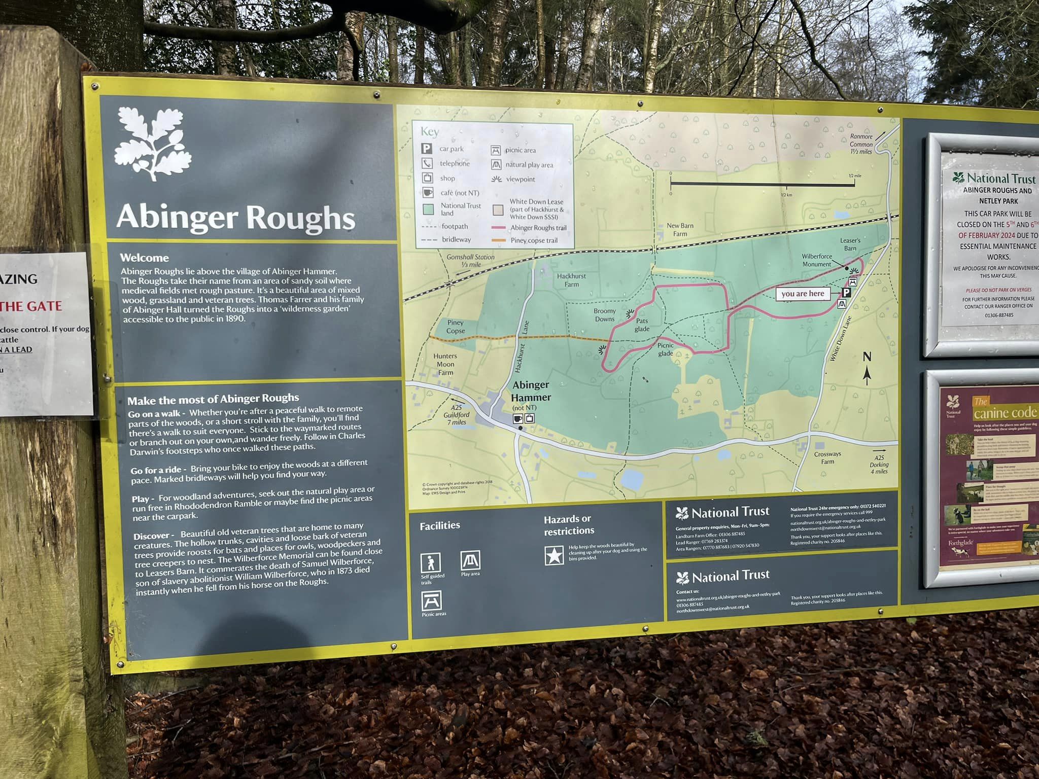 Terrain: Mix of grassy and woodland paths and a section along a quiet track/lane. Some can get muddy in the colder/wetter months. A few ups and downs and one short, sharp incline up from the Samuel Wilberforce memorial at the end (if you take that detour). Some of the woodland paths can be rocky and uneven underfoot.