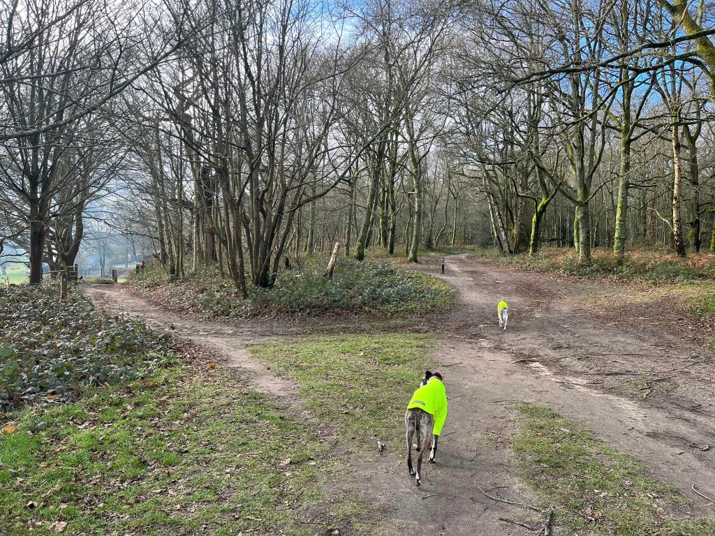 Just after another small post, this path will arrive at a grassy area – keep on ahead along the edge of the grassy area and you’ll join the main path.