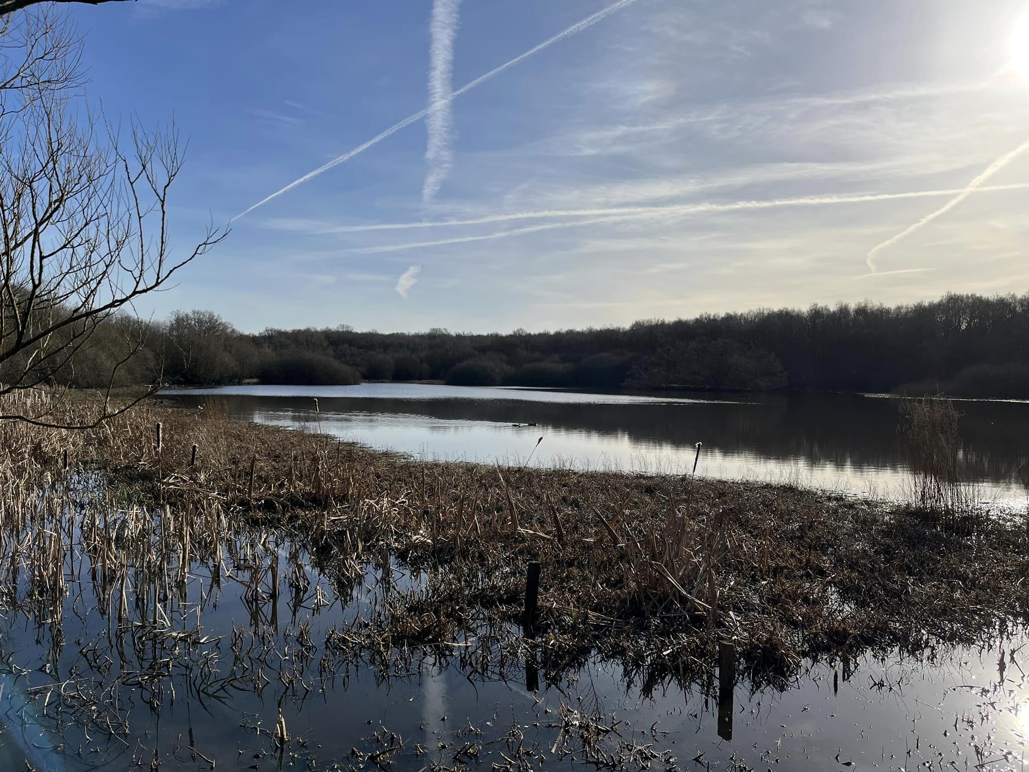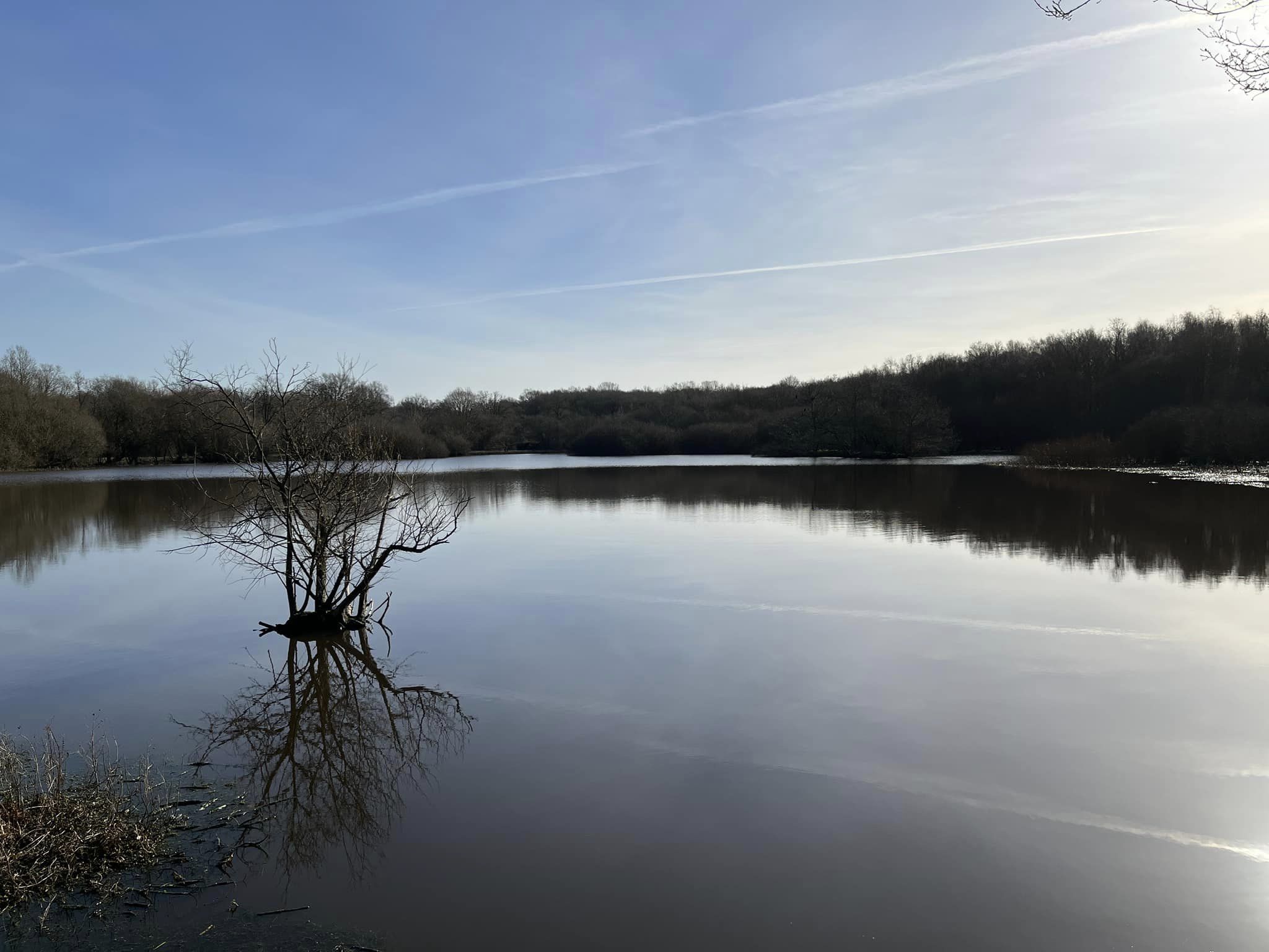 You’re now just retracing your outward route to get back to the start. This means walking along the side of Stew Pond, which is on your right.
