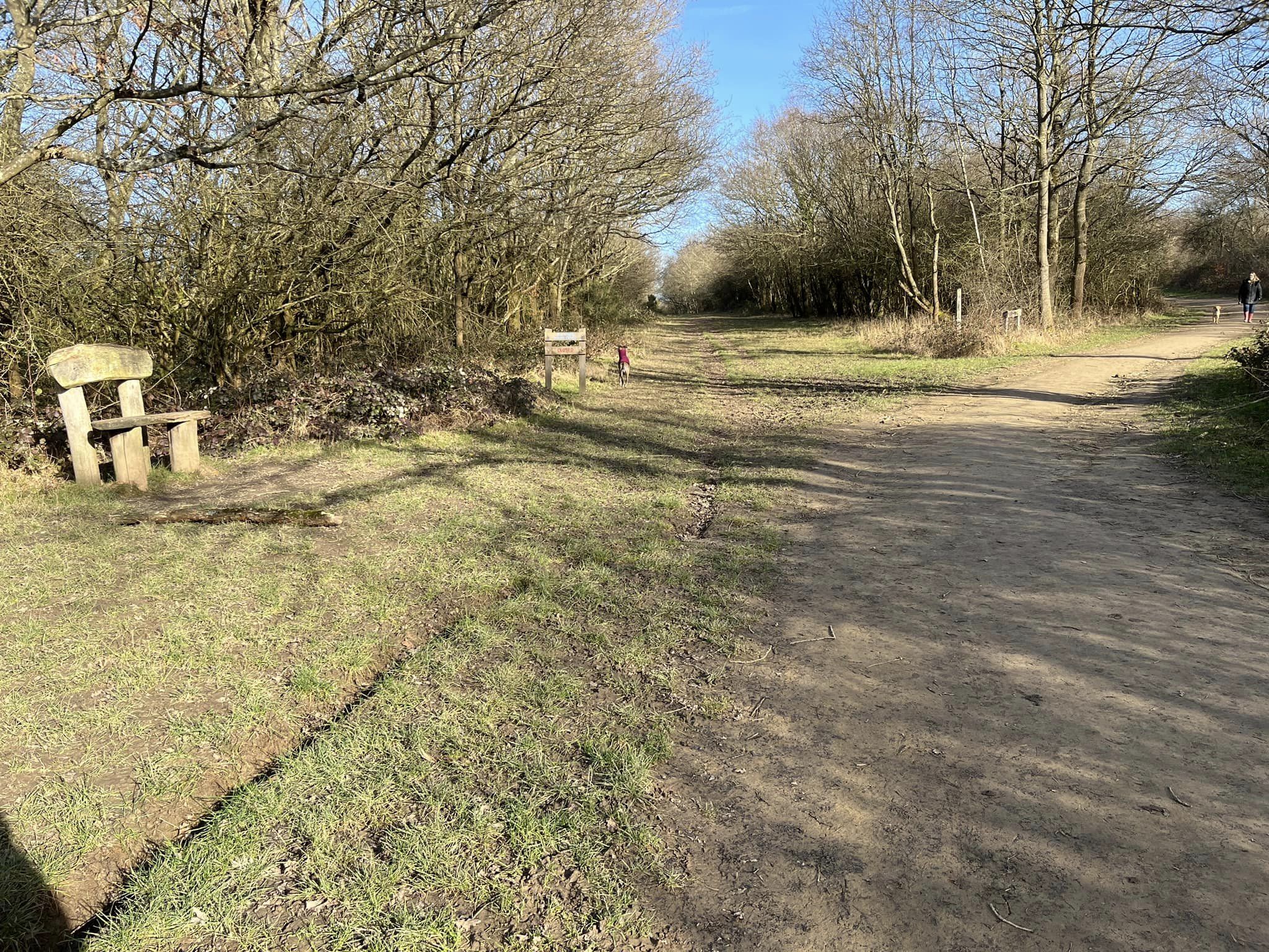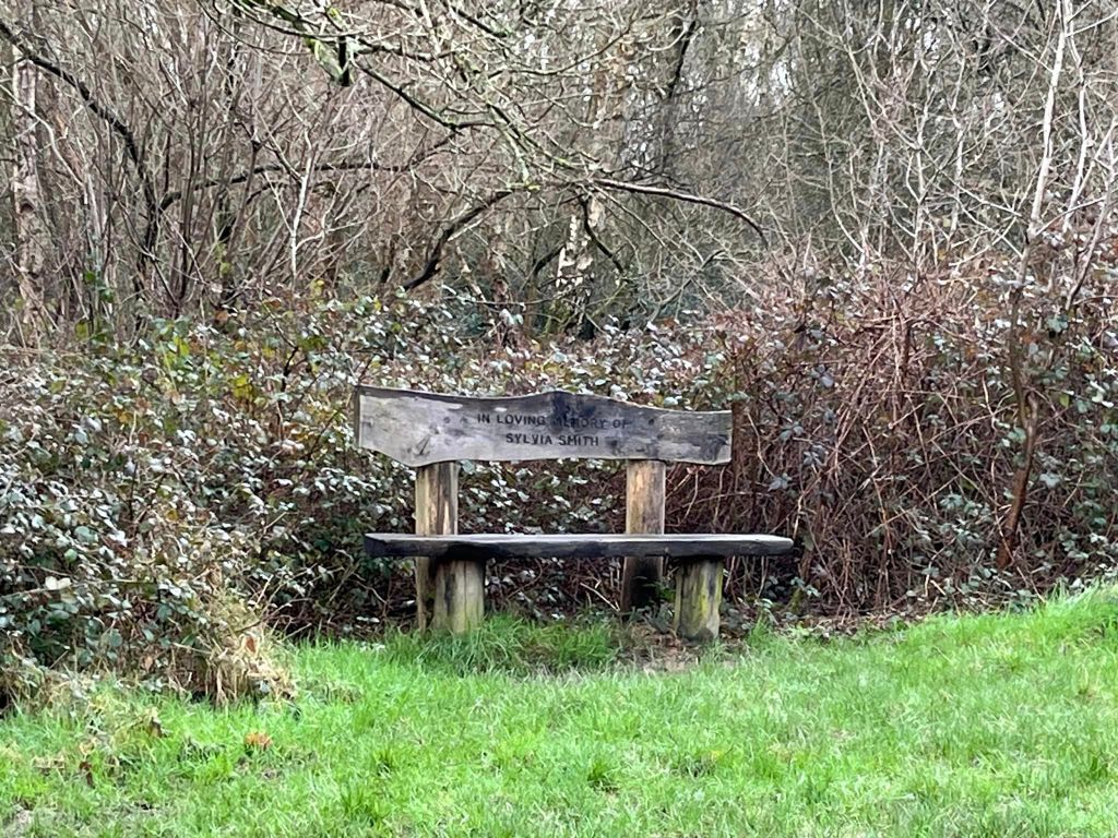 Anyway, continue straight on at the next junction of paths. You just stay on this route until you get to a cross paths next to a finger post with arrows pointing in all four directions (all simply reading public footpath, which isn’t particularly helpful in my opinion) and a bench dedicated to a Sylvie Smith. Turn left at this cross paths.
