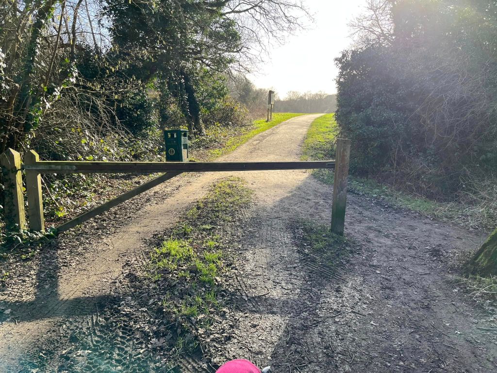 Take the main path from the car park, which is quite near the entrance from the road and has a vehicle gate across it.