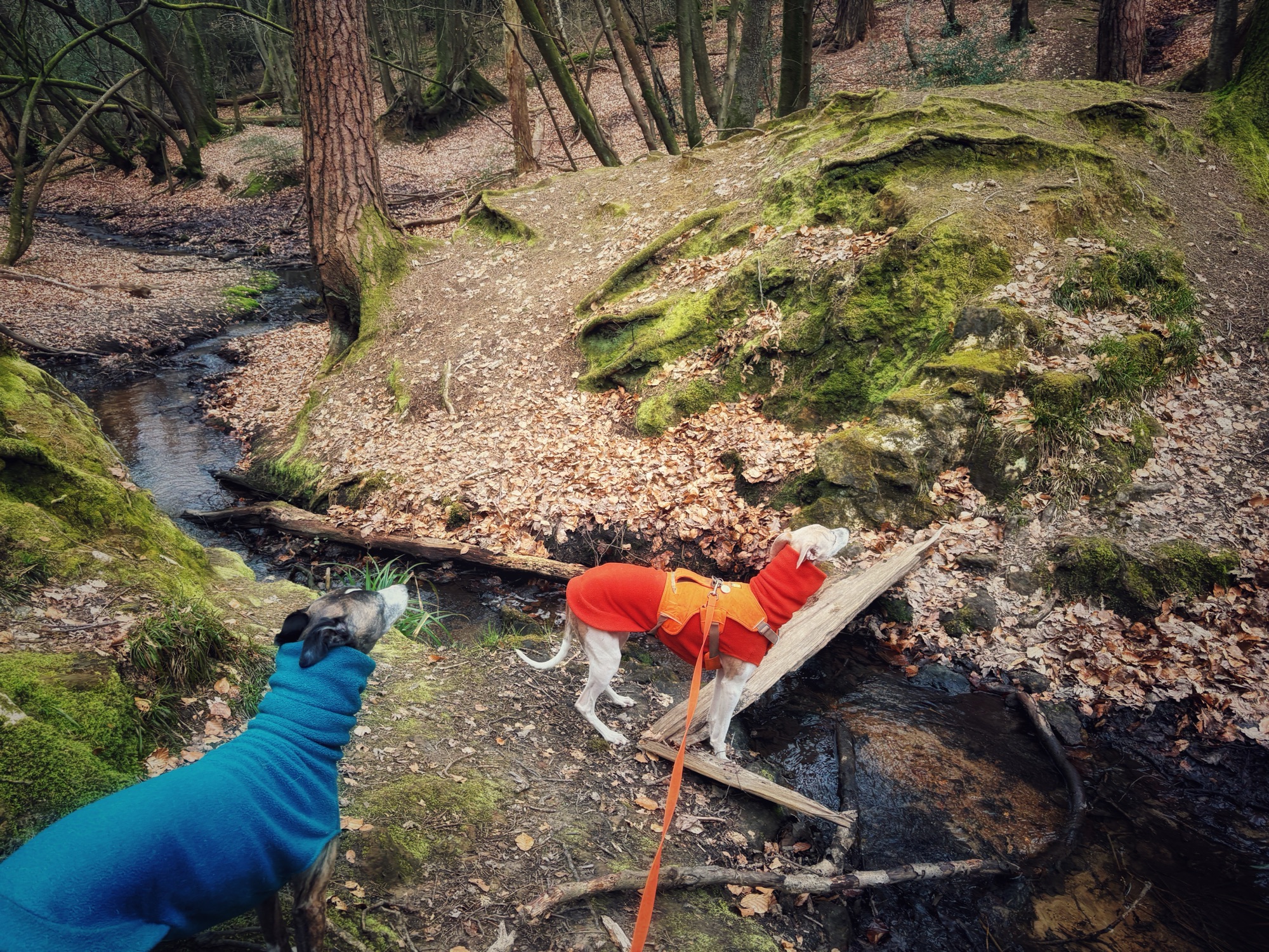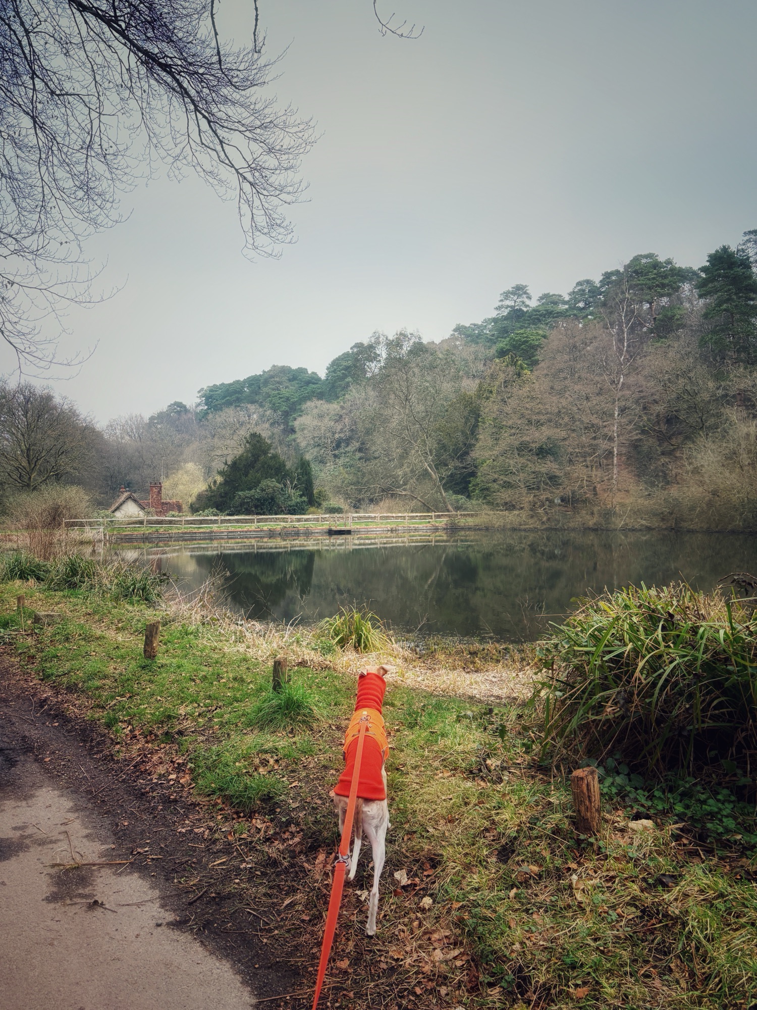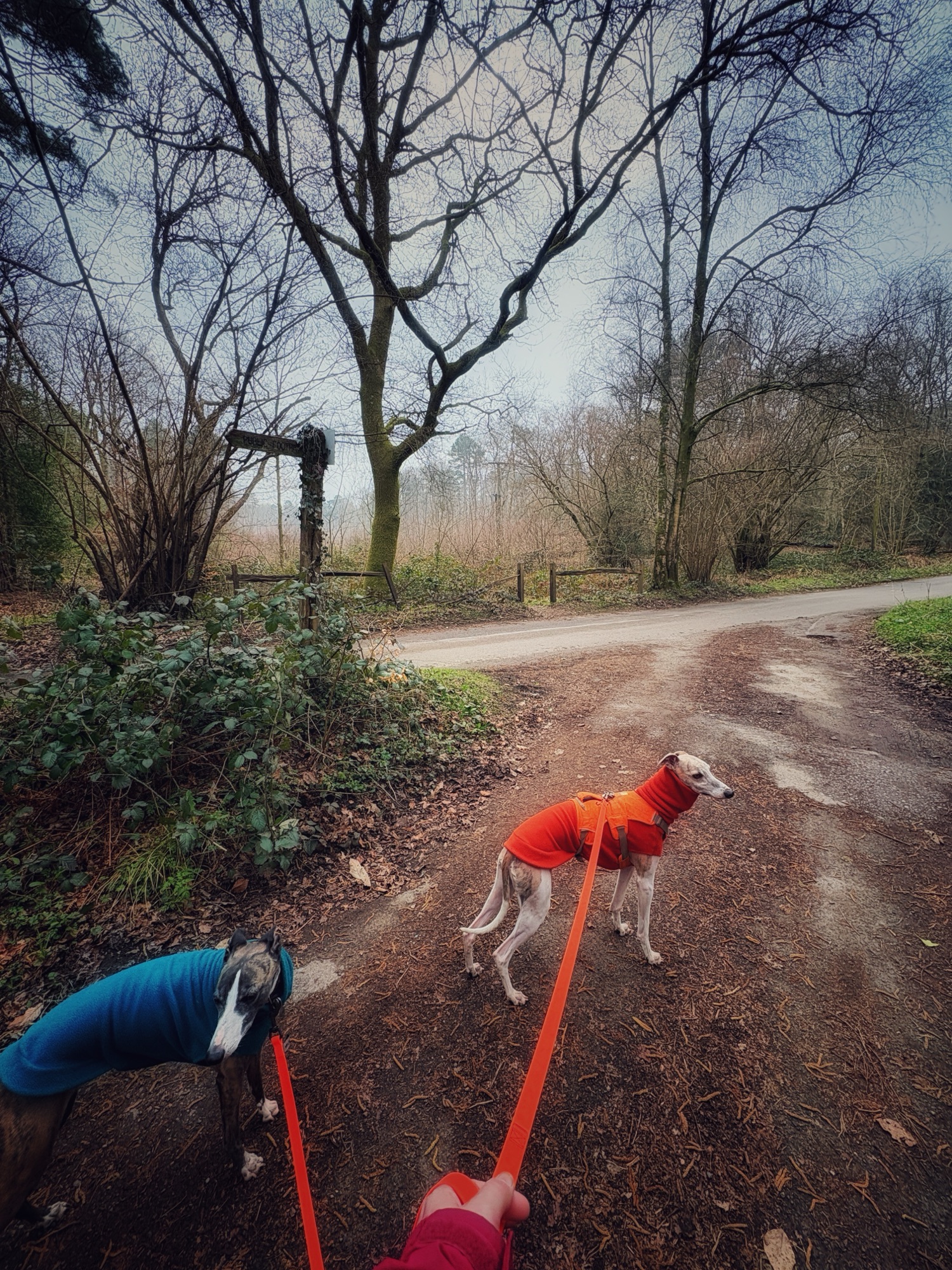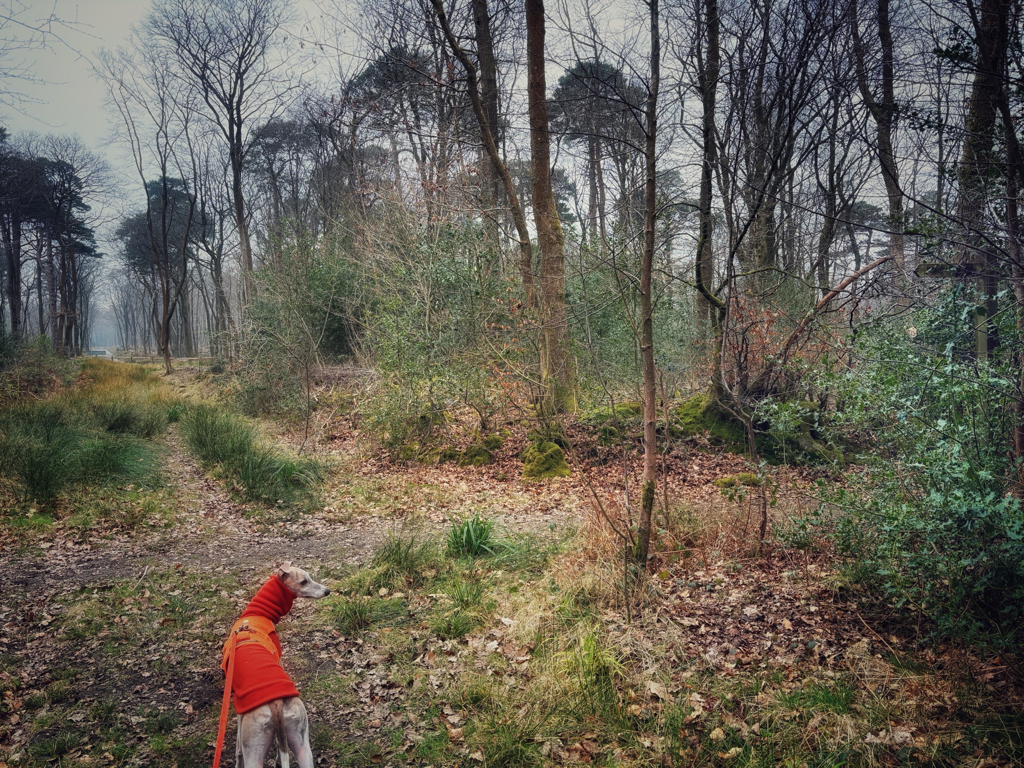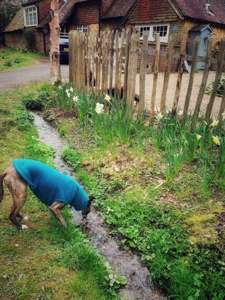 You’ll come to Abinger Common Road. Cross here, passing a post engraved with Mike Edge 1950 – 2009. I think this is weird because my dad was called Mike (which is why Mike whippet is so-called) and he was born in 1950 and died in 2009. His surname wasn’t Edge though, of course. Anyway.