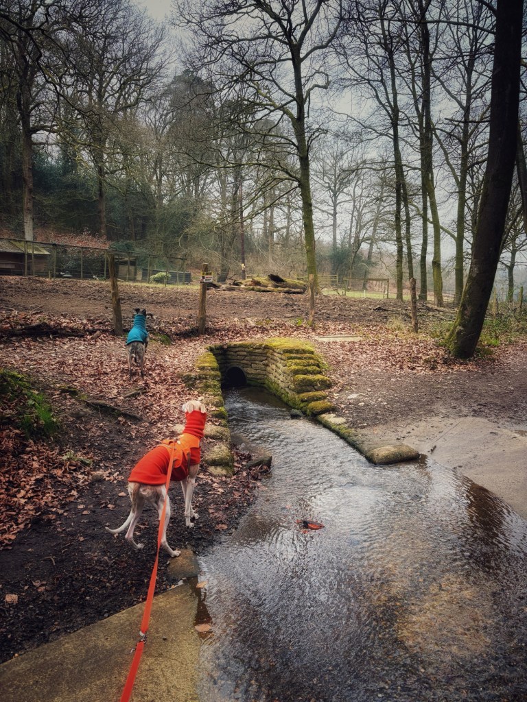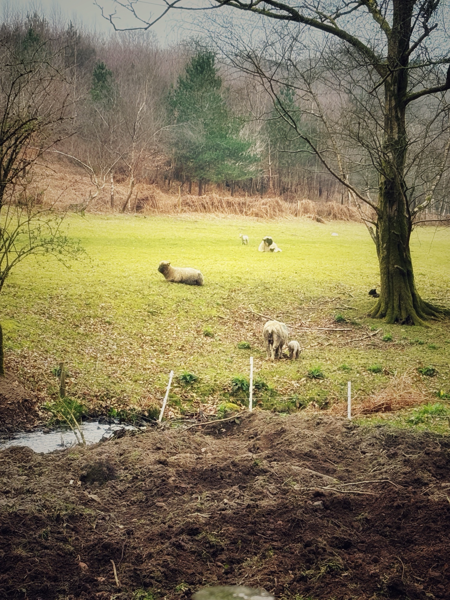 Pass Pond Cottage and keep going. Be warned, behind the hedge to the right, there are loads of laying birds and hens to the left. Cross the ford (I like to paddle through but there’s a bridge if you prefer) and continue ahead. At the time of revisiting to write this route up (March 2025), it’s lambing time and there are little lambs in the fields to the left.