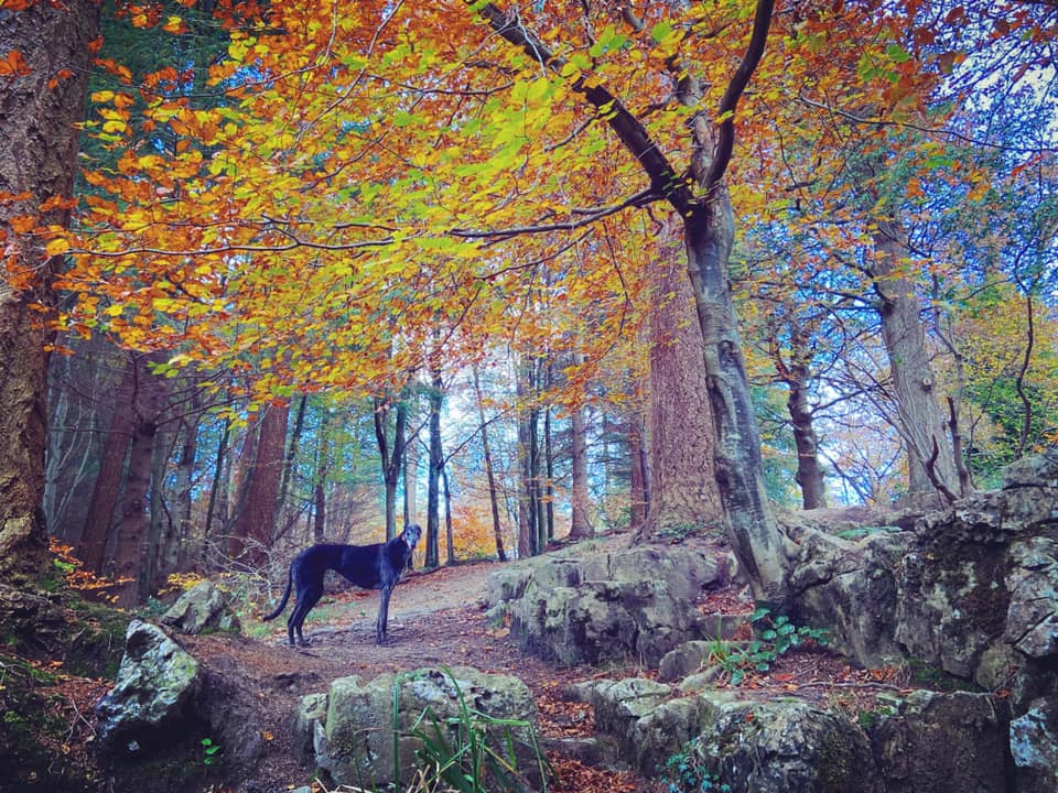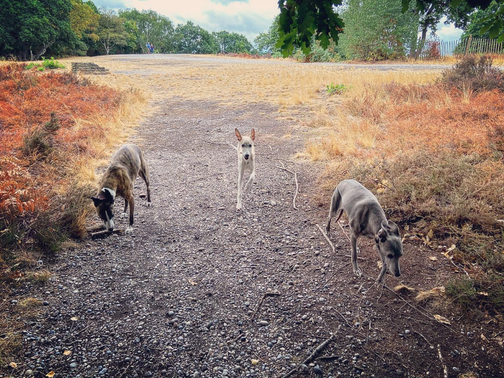 I run the Surrey Sighthound Walking Group (SSWG), a social group for sighthounds and owners based in and around Surrey, which meets a couple of times a month to walk together at some of the county’s loveliest locations. When SSWG gets together, the routes we take are largely in my head and I call out directions. This site was originally about getting those walks out of my brain so everyone can enjoy them whenever they like. It was to be a gift to the group to celebrate our fifth anniversary on 26 February 2022.